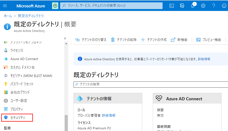 1.項番1.1で事前に設定した管理者を利用して、Azure portal(https://portal.azure.com) にサインインします。