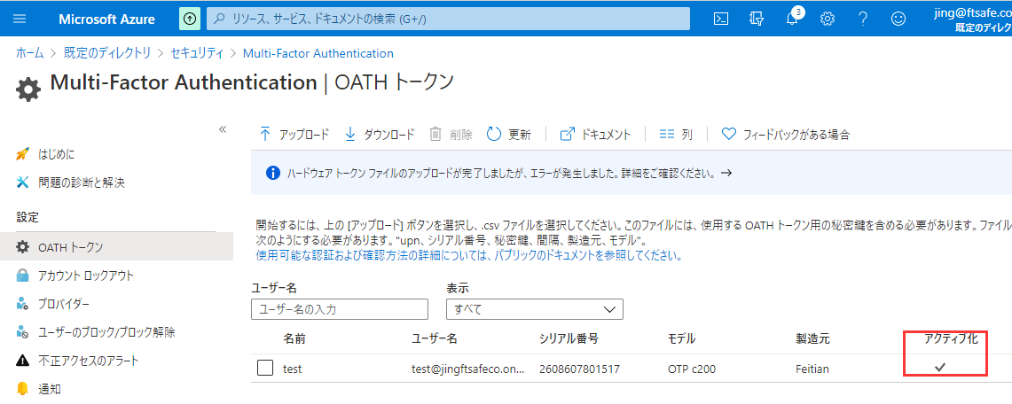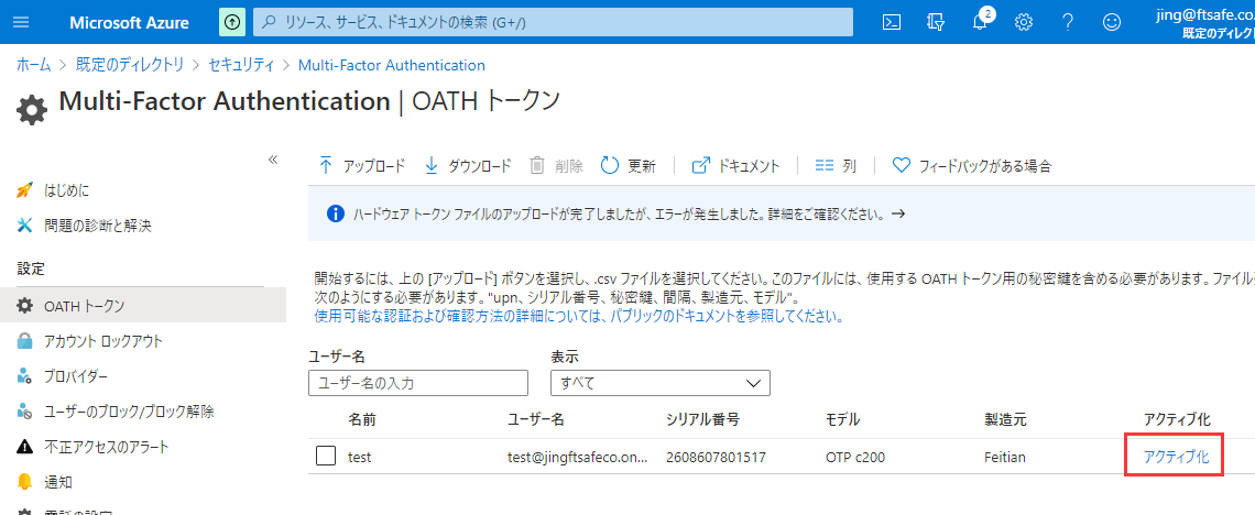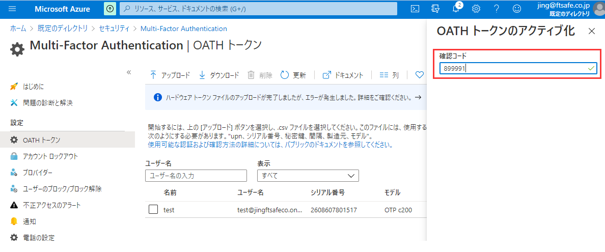 ステップ2: Microsoft AzureにOATHトークンをアップロード&アクティブ化