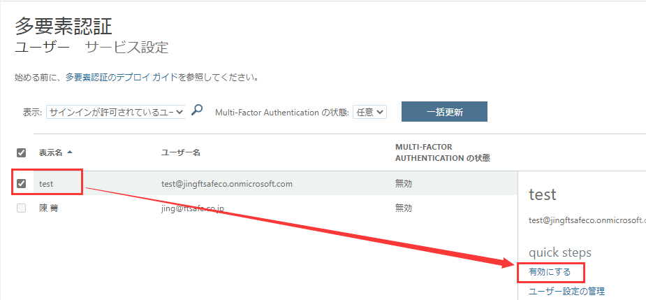 2.設定するユーザーを選択して、[有効にする]をクリックします。