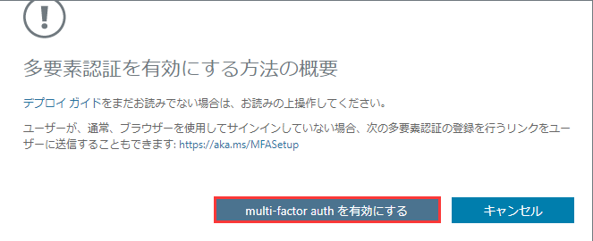 3.下記画面が表示されましたら、[multi-factor authを有効にする]をクリックします。