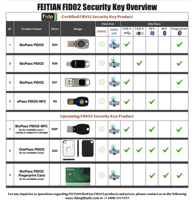 Feitian Technologies社、FIDO2製品をリリース