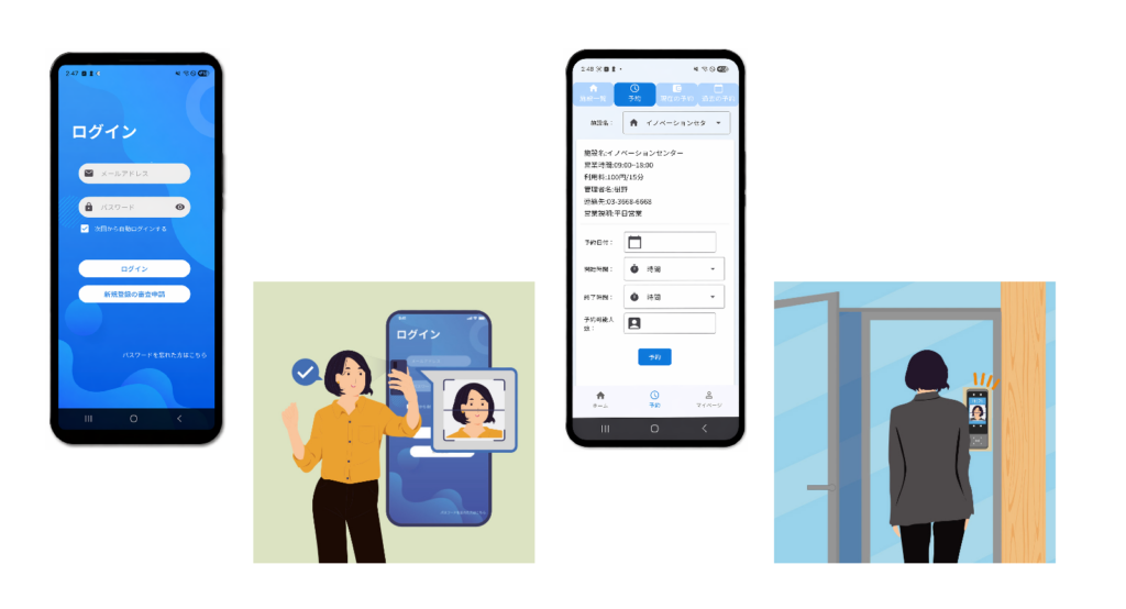 鍵や会員証など所持する必要がなく顔パスで入退室可能