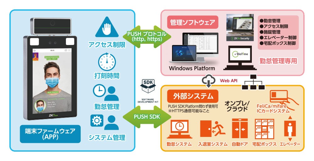 システム連携概要図:AI顔認証端末+PUSH SDK