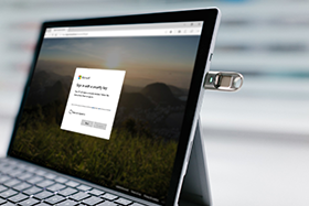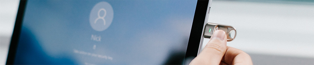 指紋認証によるパスワードレスでWindowsにログオン、「所持」+「生体」による二要素認証を実現します。BioPassを抜くとPCをロックします。