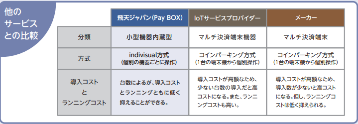 飛天ジャパンの「Pay BOX」は、今お使いの洗濯機・乾燥機のメーカーを問いません。既存のコイン投入口の仕組みに接続する「後付け」タイプのため、A社・B社など異なるメーカーの機器が混在する店舗でも、全ての機器をまとめてキャッシュレス化できます。