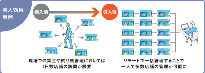 遠隔でリアルタイムに売上を確認可能。 現金回収の訪問頻度を劇的に削減でき、人件費や移動コストを圧縮します。