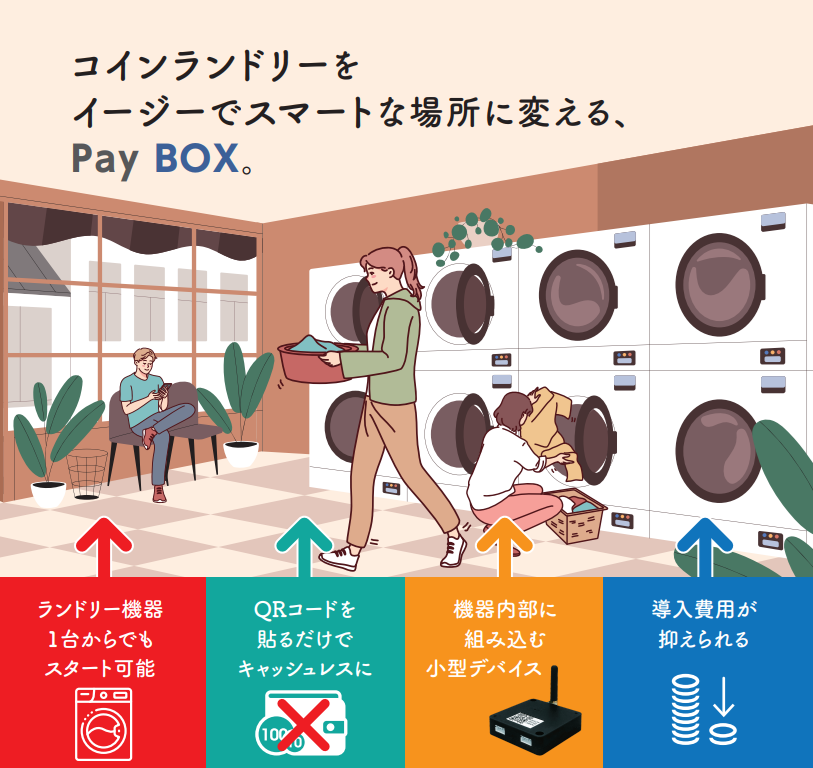 後付けキャッシュレス端末「Pay BOX」で、客単価と顧客満足度を最大化する、次世代のコインランドリー店舗経営へ。
